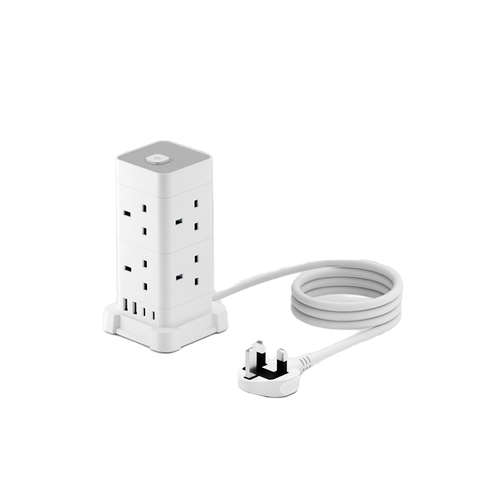 8 Way 13A USB Ports Tower Extension Lead 3 Pin Plug Standard UK Multi Plug Extension Socket Surge Protection Power Strip Home